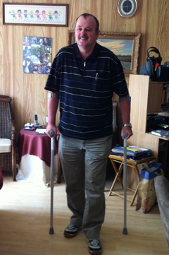 Het thuis zijn bevalt mij prima. Door te oefenen en te lopen gaat het iedere dag iets beter. Op 4 juli komt de fysiotherapeut langs. Thuiszorg is vanmorgen voor het laatst langs gekomen om de blaren te behandelen. Het ziet er goed uit. Morgenmiddag weer terug naar het UMCG om de wond te laten controleren en de 18 nietjes (krammen) te laten verwijderen. Op 28 juli staat de eerste controle gepland bij de afdeling Orthopedie.Heerlijk, weer thuis