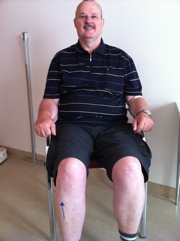 Door een verpleegkundige werd ik op de afdeling Orthopedie ontvangen en vond een intakegesprek plaats. Dit ging voornamelijk over mijn diabetes. Ik moet stoppen met het innemen van een tweetal medicijnen. Mijn suikerwaarden waren wat aan de hoge kant (13,3).Daarna kwam de co-assistente langs om een aantal vragen te stellen en mij te onderzoeken. Zij heeft vervolgens een blauwe pijl gezet op mijn rechterbeen. Nou maar hopen dat ik niet met de benen over elkaar ga liggen..:-)
