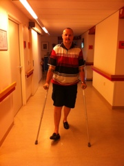Vanochtend geoefend hoe je met de krukken de trap op en af kunt lopen. Verder gaat alles goed en de wond blijft nu dicht. Ik hoop dit morgenvroeg ook het geval is.Nog niet naar huis